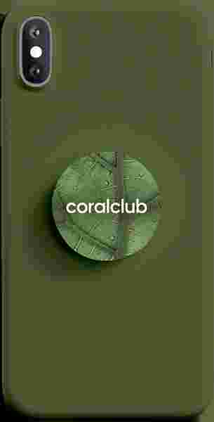 Der PopSocket mit dem Coral Club-Logo - ein aufklappbarer Kunststoffhalter für Smartphones.